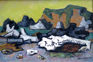 Erle Loran was born in 1905 in Minneapolis, Minnesota. He graduated from the University of Minnesota, and then went on to study at the Minneapolis School of Art under direction of Cameron Booth. Loran received early recognition when, in 1926, he was awarded the Paris Prize from the Chaloner Foundation, which provided him with a scholarship to travel throughout Europe. While in Europe, he lived in the former studio of Paul Cézanne. This experience initiated a life-long fascination with Cézanne, and in 1943 Loran wrote a book on the artist entitled “Cezanne’s Composition.” Upon returning from Europe, Loran moved to California and began exhibiting extensively. He had solo shows at the San Francisco Museum of Art, the Santa Barbara Museum of Art, the Pasadena Museum of Art, and the de Young Museum in San Francisco. He also began a long teaching career at the University of California, Berkeley. Loran served as the chair of the Art Department in the early 1950’s. In his early years of painting, Loran was best know for his watercolor landscapes, but by the late 1960’s he focused on more abstract images, fusing together Op Art, Pop Art, and Hard Edge. Loran retired from the University of California, Berkeley in 1973 and he was awarded a University Citation. The University again recognized his dedicated service in 1981, declaring him an Emeritus Professor. Despite being hindered by a visual impairment, Loran continued to paint until about a year before his death. He died in Berkeley, California in 1999.