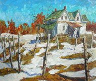 Ross Robershaw was born in Toronto, Canada in 1919. He worked in Toronto for 19 years painting street scenes and portraits of old homes. Around 1973 he settled near Buckhorn, north of Peterborough, Ontario. Most of his paintings were done plen aire, and he traveled long distances to paint scenery. Some painting trips took him to such scenic places as Halliburton and Algonquin Park. While in his studio he also painted portraits, seventy of which are self portraits. He lived in a 135 year old cabin with his wife Lillian. He also converted an old church into the Rockcroft Gallery where he exhibited and sold his work. He has also exhibited at the Mackenzie Gallery at Trent University, and the Gallery Gabor in Toronto. He died in 1979.